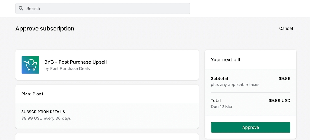 The next step would be to accept charges. BYG uses Shopify’s billing APIs so you don’t have to pay multiple invoices or enter your payment details everywhere. Shopify collects our app’s charges on our behalf and sends you invoice with our charge details.