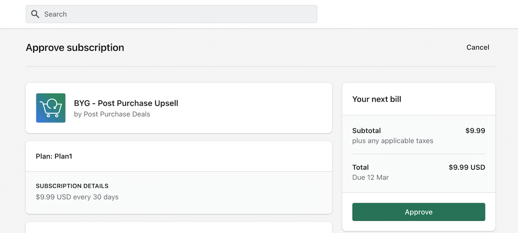 The next step would be to accept charges. BYG uses Shopify’s billing APIs so you don’t have to pay multiple invoices or enter your payment details everywhere. Shopify collects our app’s charges on our behalf and sends you invoice with our charge details.