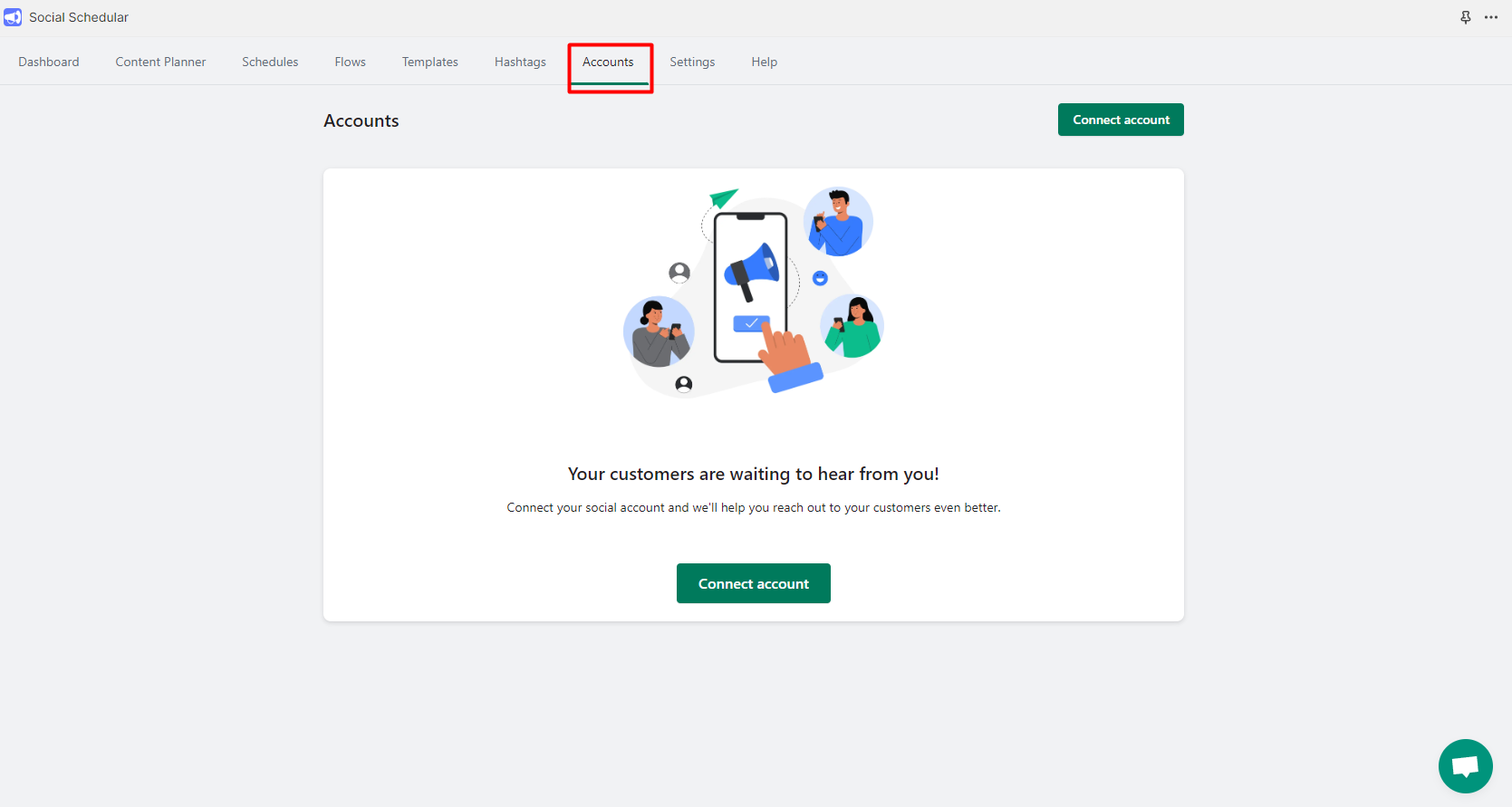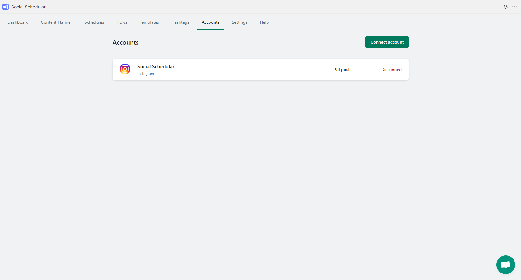 Step 1: Open Social Schedular App and Go to **Accounts**, and Click "Connect Account"
