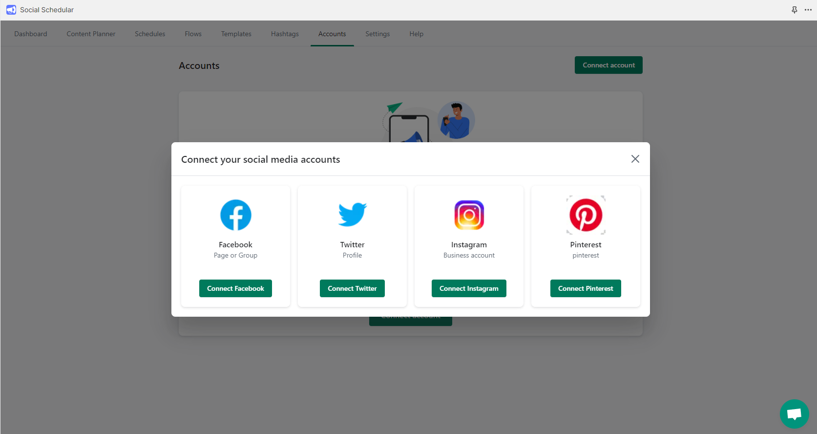 # Connect Social Media Account with Social Schedular App