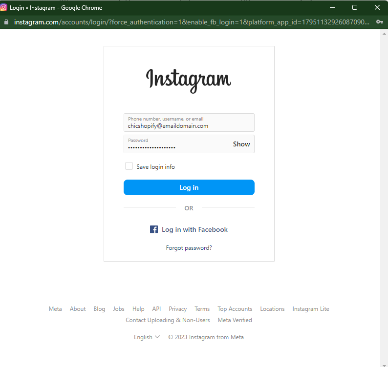 4. Type in your username and password for Instagram, then press the button that says "Log In". If you are already signed in or have saved your login information, just click the button that says "Continue".<br>